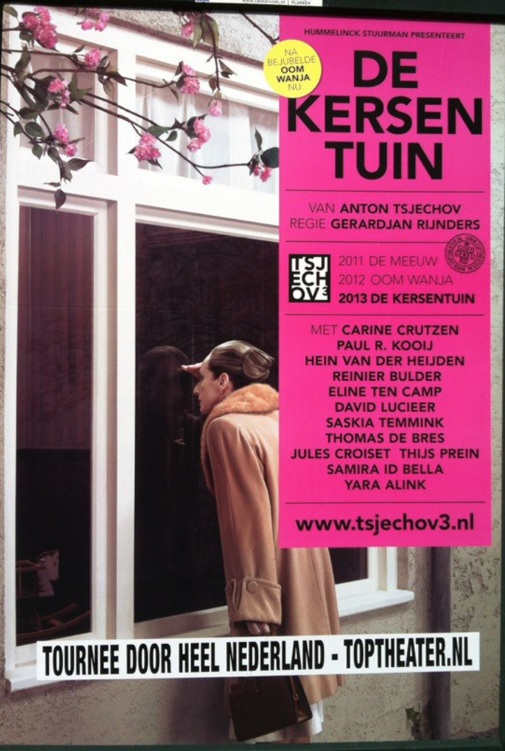 Tekst Anton Tsjechov Bewerking Gerardjan Rijnders en Janine Brogt Regie Gerardjan Rijnders Spel Carine Crutzen, Paul R. Kooij, Hein van der Heijden, Reinier Bulder, Eline ten Camp, David Lucieer, Saskia Temmink, Thomas de Bres, Jules Croiset, Thijs Prein, Samira Id Bella, Yara Alink Decor Ellen Windhorst Scènefoto’s Ben van Duin